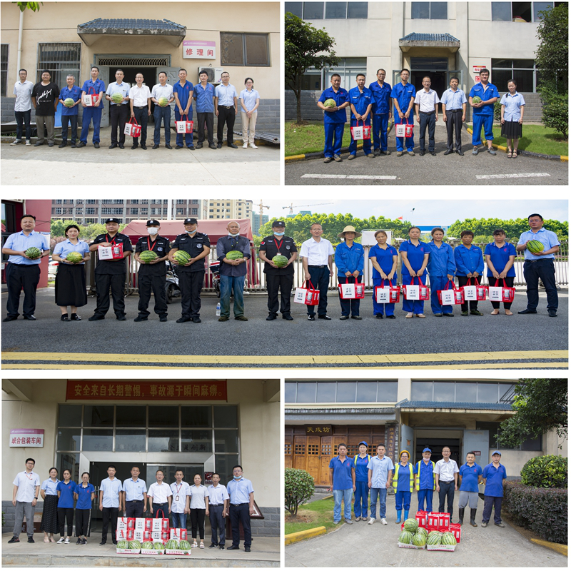 活動(dòng)中,謝毅一行前往釀造、包裝、勾儲(chǔ)、后勤等一線部門(mén),向工作在一線的員工送去西瓜、古樂(lè)神曲等防暑降溫物品,并叮囑他們要加強(qiáng)自身防護(hù),做好防暑降溫工作,確保人身安全、生產(chǎn)安全。