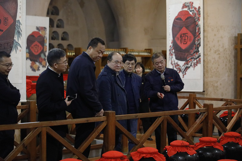 王慶軍一行調(diào)研了公司天成坊釀造車間、名人酒窖、酒文化博物館、黨建文化館等地。許鵬詳細(xì)介紹了黃鶴樓酒釀造工藝、歷史文化淵源及公司核心產(chǎn)品、近期發(fā)展態(tài)勢(shì),他表示,黃鶴樓酒植根荊楚,有著深厚的底蘊(yùn),在傳承古韻古法的基礎(chǔ)上結(jié)合現(xiàn)代化科學(xué)技術(shù)創(chuàng)造性提出了“五個(gè)三”“洞藏洞釀”等一系列創(chuàng)新舉措,力爭(zhēng)樹立鄂酒新標(biāo)桿。