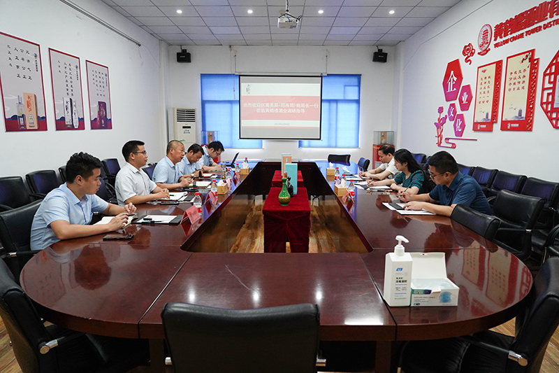 6月9日,漢陽(yáng)區(qū)商務(wù)局副局長(zhǎng)楊雯娟、洲頭街紀(jì)工委書(shū)記高斌一行到黃鶴樓酒業(yè)調(diào)研企業(yè)現(xiàn)狀,了解企業(yè)難題。公司黨委委員、副總經(jīng)理魏國(guó)參加座談會(huì)。