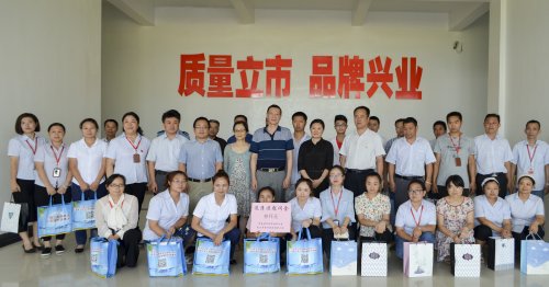 咸寧分廠廠長閔波平、工會主席許鳳娥、勾調(diào)大師夏吉林及相關(guān)工作人員陪同慰問參觀。