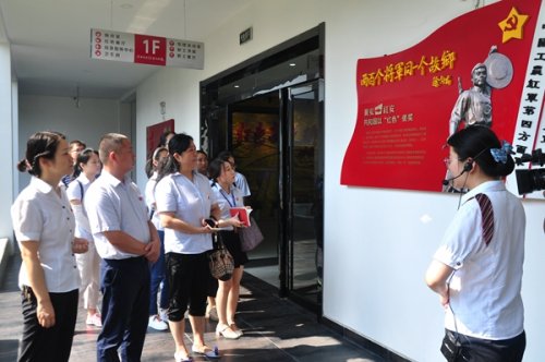 在紅安黨支部書記葉小紅的陪同下,魏國(guó)一行首先參觀了紅色展廳、紅色文化長(zhǎng)廊、黨團(tuán)活動(dòng)室、職工活動(dòng)室等黨建工作陣地。仔細(xì)查閱紅安黨建及“紅旗黨支部”創(chuàng)建工作資料,聆聽(tīng)了紅安黨支部自創(chuàng)的歌曲《紅色足跡》,詳細(xì)了解“三評(píng)一贊”工作法、黨員“微承諾”、支部組織生活等基層黨建工作情況。