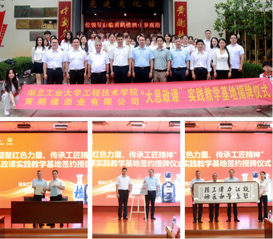 6月24日,湖北工業(yè)大學(xué)工程技術(shù)學(xué)院與黃鶴樓酒業(yè)舉行“大思政課”實(shí)踐教學(xué)基地簽約及授牌儀式。湖北工業(yè)大學(xué)工程技術(shù)學(xué)院黨委書記朱愛軍、副院長姜偉,黃鶴樓酒業(yè)黨委委員、技術(shù)質(zhì)量中心總監(jiān)李良,工會主席、黨工團(tuán)中心總監(jiān)張瑞,人力資源中心總監(jiān)張佳出席活動(dòng)。