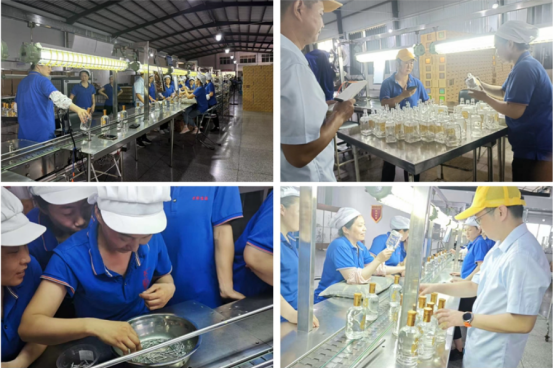 競賽現(xiàn)場,參賽選手分別在“火眼金睛-驗酒比拼”“心靈手巧-鉚釘分類”“質(zhì)檢能手-酒瓶缺陷識別”三個項目上比拼操作技能,車間管理人員擔任裁判和記錄員,現(xiàn)場氛圍熱烈,緊張有序,經(jīng)過激烈的角逐,共產(chǎn)生優(yōu)勝人員11人。