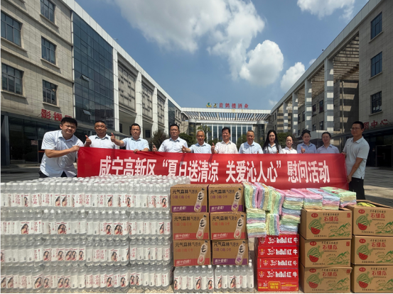 8月6日,咸寧高新區(qū)黨工委委員、紀(jì)監(jiān)工委書記佘中宏一行到黃鶴樓酒業(yè)咸寧子公司開展“夏日送清涼 關(guān)愛沁人心”主題慰問活動,公司酒體設(shè)計(jì)總工程師李久洪、釀造管理中心總監(jiān)助理史健陪同慰問。