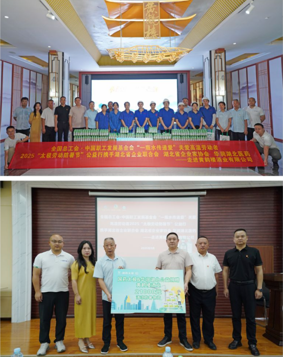 捐贈(zèng)儀式上,國藥太極和華潤湖北醫(yī)藥向黃鶴樓酒業(yè)一線員工捐贈(zèng)了價(jià)值21000元的防暑物資,并叮囑一線員工在工作中注意夏日健康防暑。