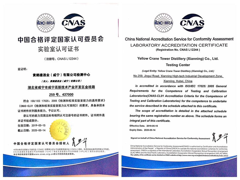 近日,黃鶴樓酒業(yè)咸寧檢測中心通過CNAS(中國合格評(píng)定國家認(rèn)可委員會(huì))認(rèn)可,獲得由中國合格評(píng)定國家認(rèn)可委員會(huì)(CNAS)頒發(fā)的國家實(shí)驗(yàn)室認(rèn)可證書。