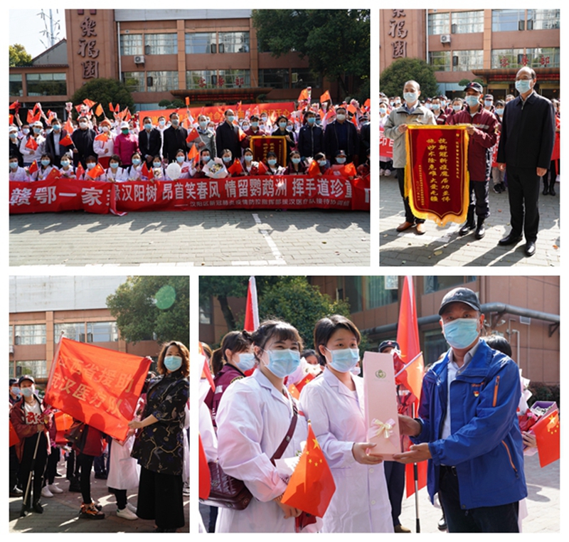 來時冰霜雨雪,走時春暖花開。歡送儀式上,徐麗代表漢陽區(qū)新冠肺炎疫情防控指揮部對江西省醫(yī)療隊的千里馳援送上了衷心的感謝,感謝醫(yī)療隊在抗擊疫情戰(zhàn)斗的關(guān)鍵時刻,毅然決然地奔赴湖北、馳援武漢,武漢將永遠銘記醫(yī)療隊的付出與犧牲。