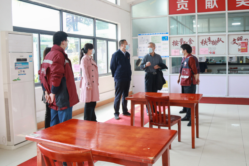 調(diào)研中,胡忠凱檢查了廠區(qū)各項(xiàng)防疫措施落實(shí)情況,其中重點(diǎn)查看了公司食堂衛(wèi)生、就餐環(huán)境、餐具消毒、人員健康防護(hù)及防疫宣傳氛圍布置等情況。許鵬介紹了公司車(chē)間、食堂、辦公樓等重點(diǎn)區(qū)域疫情防控的安排和措施。