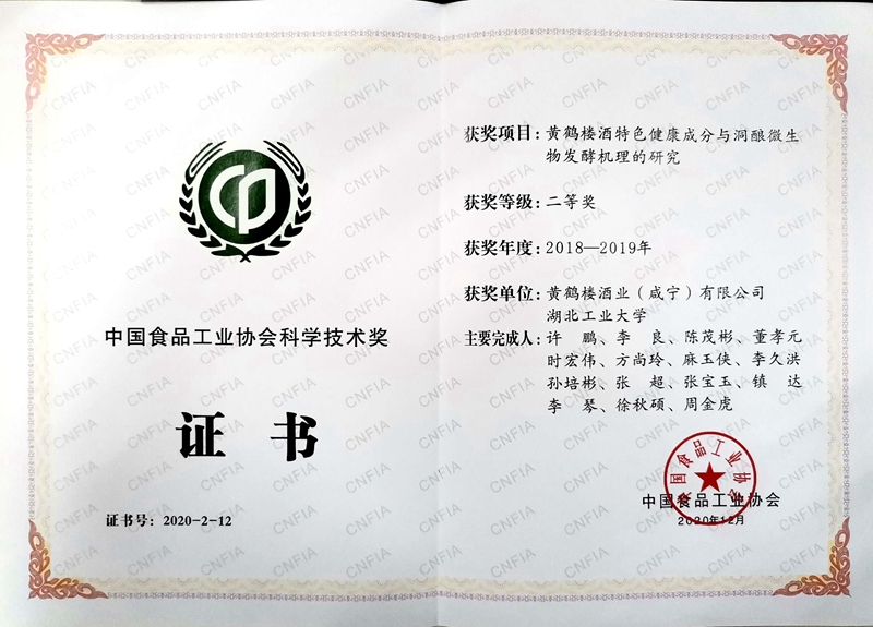 黃鶴樓酒業(yè)中國食品工業(yè)協(xié)會科學技術(shù)獎二等獎