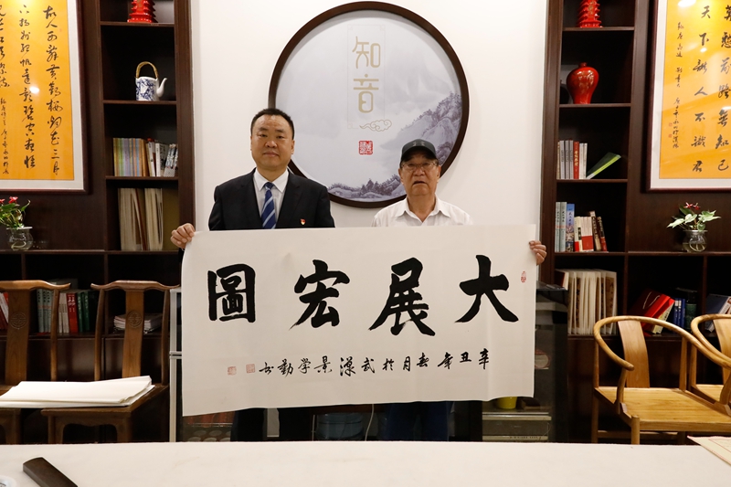 隨后,景學(xué)勤中將揮毫潑墨,贈予黃鶴樓酒業(yè)“大展宏圖”墨寶,表達(dá)對黃鶴樓酒業(yè)的美好祝愿。