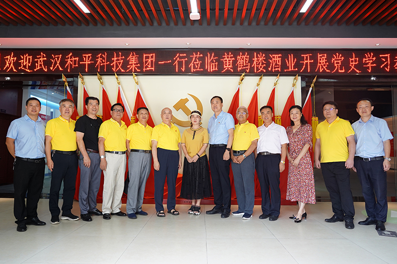 7月23日,武漢和平科技集團(tuán)總裁黃海音,副總裁、工會主席甘國英,黨總支書記曹榮生帶領(lǐng)公司黨員、積極分子等50余人到黃鶴樓酒業(yè)開展黨史學(xué)習(xí)教育,黃鶴樓酒業(yè)黨委書記、董事長許鵬接待來訪。