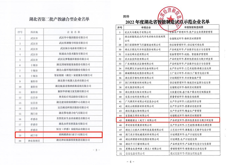 近日,公司喜訊不斷,捷報(bào)連連,黃鶴樓酒業(yè)(咸寧)有限公司分別成功入選《湖北省第二批產(chǎn)教融合型企業(yè)》及《2022年度湖北省智能制造試點(diǎn)示范企業(yè)》。