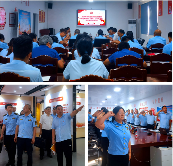 在二樓會議室,全體黨員共同重溫入黨誓詞。隨后,大家學(xué)習(xí)了一堂紀(jì)律專題黨課,并互相交流了特色黨建工作經(jīng)驗。