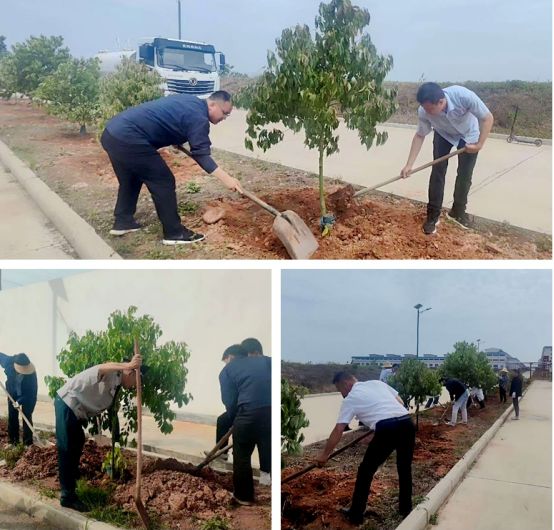 活動(dòng)現(xiàn)場(chǎng),全體黨員分為挖樹、種樹兩隊(duì),挖樹隊(duì)手持工具,小心將樟樹從一號(hào)酒庫(kù)施工場(chǎng)地挖起;種樹隊(duì)則在污水處理站和糟場(chǎng)同步作業(yè),快速完成扶樹、澆水、填土等工序。最終,在大家的高效協(xié)作下,30余棵樟樹全部移栽到位,充分保障了一號(hào)酒庫(kù)的順利施工。