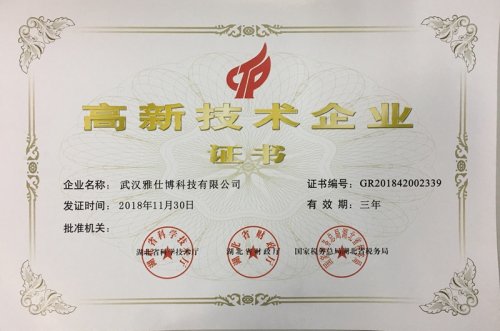 近日,根據(jù)《高新技術(shù)企業(yè)認(rèn)定管理辦法》(國科發(fā)火【2016】32號(hào))和《高新技術(shù)企業(yè)認(rèn)定管理工作指引》(國科發(fā)火【2016】195號(hào))有關(guān)規(guī)定,武漢雅仕博科技有限公司被認(rèn)定為湖北省第二批國家高新技術(shù)企業(yè)。