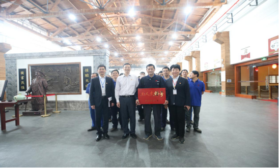4月26日,湖北省經(jīng)貿(mào)工會主任周溢一行工會領(lǐng)導到黃鶴樓酒業(yè)參觀并為武漢釀酒車間授牌。