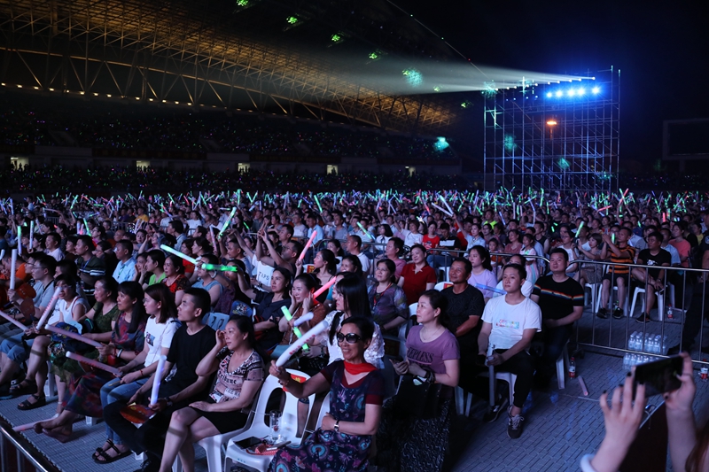 演唱會(huì)的現(xiàn)場(chǎng)表演火爆,觀眾熱情高漲。觀眾們揮舞著熒光棒與臺(tái)上的歌手們共同合唱,互動(dòng)頻繁。比起現(xiàn)場(chǎng)觀眾的熱情,炎炎夏日已經(jīng)不足道,用音樂(lè)解暑,黃鶴樓酒為黃岡市民送上了清涼一夜。
