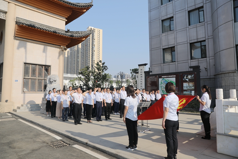 8時(shí)30分,升國(guó)旗、奏國(guó)歌,全體觀禮人士面向旗桿肅立,五星紅旗伴著朝陽(yáng)徐徐升起,在晨風(fēng)中飄揚(yáng)。隨后,在莊嚴(yán)的中共黨旗前,麻玉俠帶領(lǐng)各位員工重溫入黨誓詞,黃曉文帶領(lǐng)各位員工宣讀黃鶴樓酒業(yè)誓詞,勉勵(lì)各位員工為實(shí)現(xiàn)中華民族偉大復(fù)興的中國(guó)夢(mèng)、黃鶴樓酒名酒復(fù)興的企業(yè)夢(mèng)不斷奮進(jìn)!