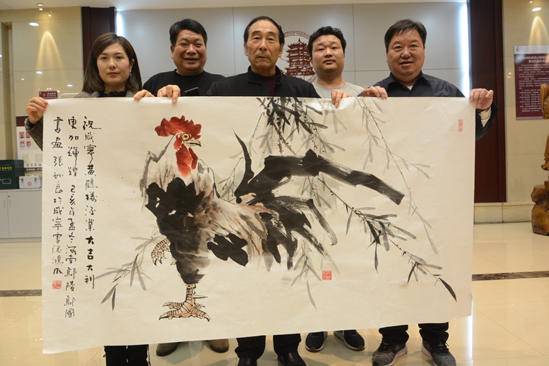 張如良一行參觀了景區(qū)的商貿(mào)中心、黃鶴樓酒文化館、美酒銀行、鶴隱居、酒香花果山等景點(diǎn),在酒香花果山,張如良贊賞黃鶴樓森林美酒小鎮(zhèn)的風(fēng)景秀麗,同時對品嘗的黃鶴樓原酒贊不絕口,隨后,現(xiàn)場創(chuàng)作一幅“大吉(雞)大利”圖贈與黃鶴樓酒業(yè),并預(yù)祝黃鶴樓酒業(yè)銷量更上一層樓。